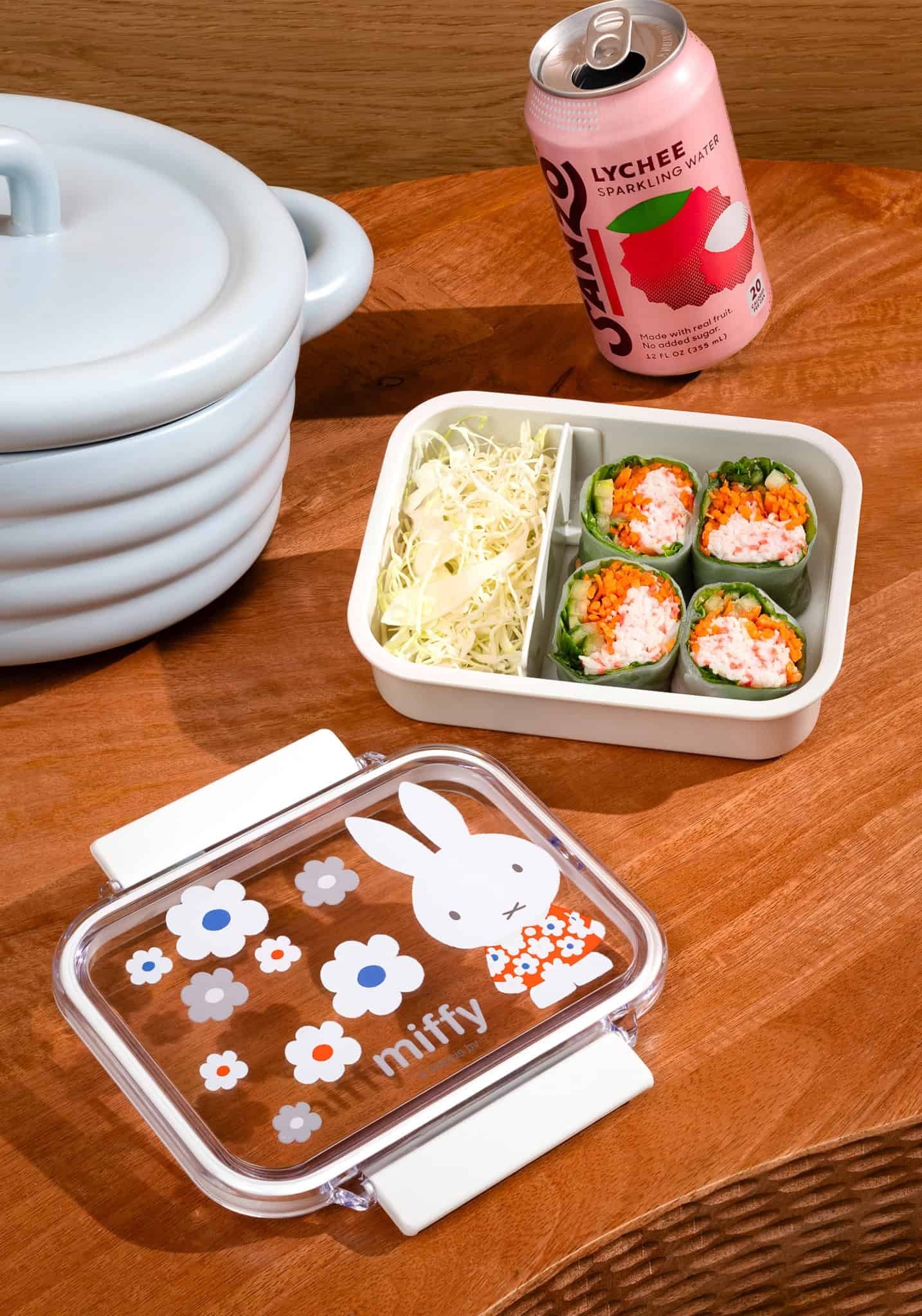 This set of three Miffy rectangular containers includes dome-shaped lids, which allow for more generous meal packing. The containers nest together for compact and easy storage. They are microwave-safe when the lid is removed, making them ideal for use as lunch boxes, food storage, or organizers for small items.
