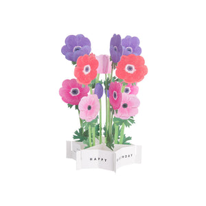 This charming birthday card features a pop-up bouquet of colorful anemones. The card makes a wonderful greeting and can also double as a table centerpiece.