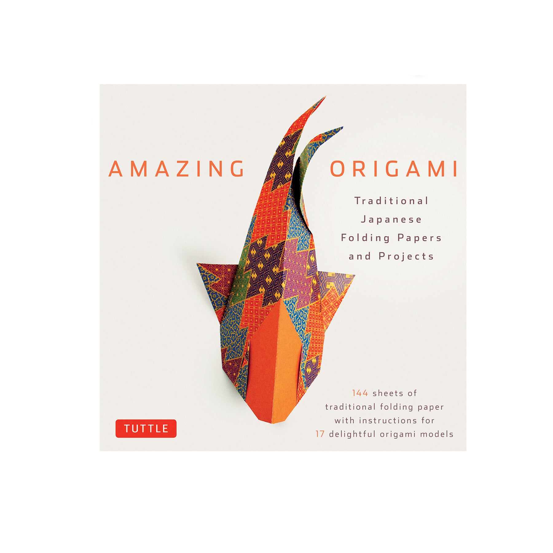 The kit is designed for origami paper folders of all ages and all skill levels—from novices up to more experienced folders. It provides everything you need to create exciting and original origami art. The gorgeous folding papers feature delicate patterns with gold detailing, recalling the one-of-a-kind traditional designs used in the Japanese kimono fabrics from a bygone era.