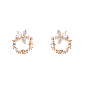 OPEN CIRCLE CRYSTAL EARRINGS WITH BLOSSOMS