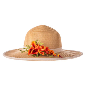Add some California gold to your sunny day outfits with this classic straw sunhat, trimmed with vibrant California poppies.