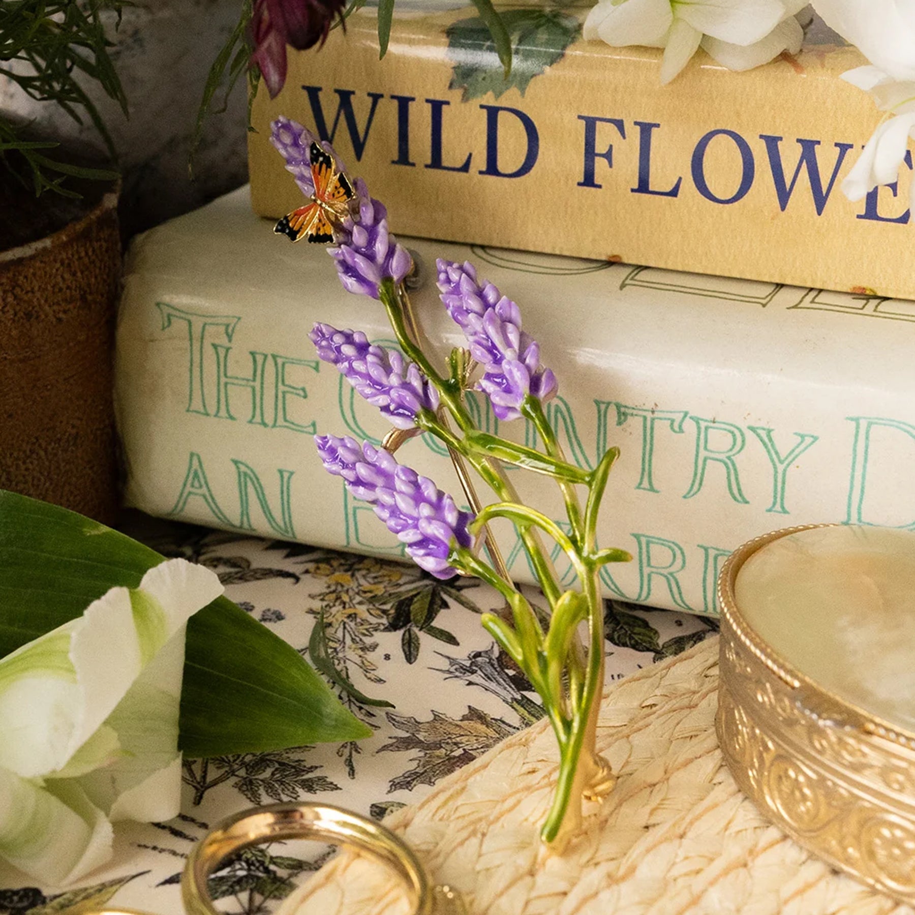 Inspired by fields of spring lavender and the calming beauty it represents, this brooch captures the gentle romance of nature in bloom.