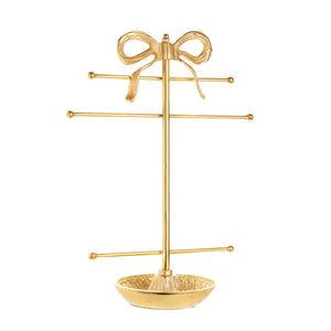 Elevate your vanity or dresser with the Gold Bow Jewelry Holder. This beautifully crafted aluminum piece features a luxurious gold finish, blending elegance with functionality. Designed to keep your necklaces, bracelets, and rings organized and tangle-free, it transforms your jewelry selection into a delightful experience.