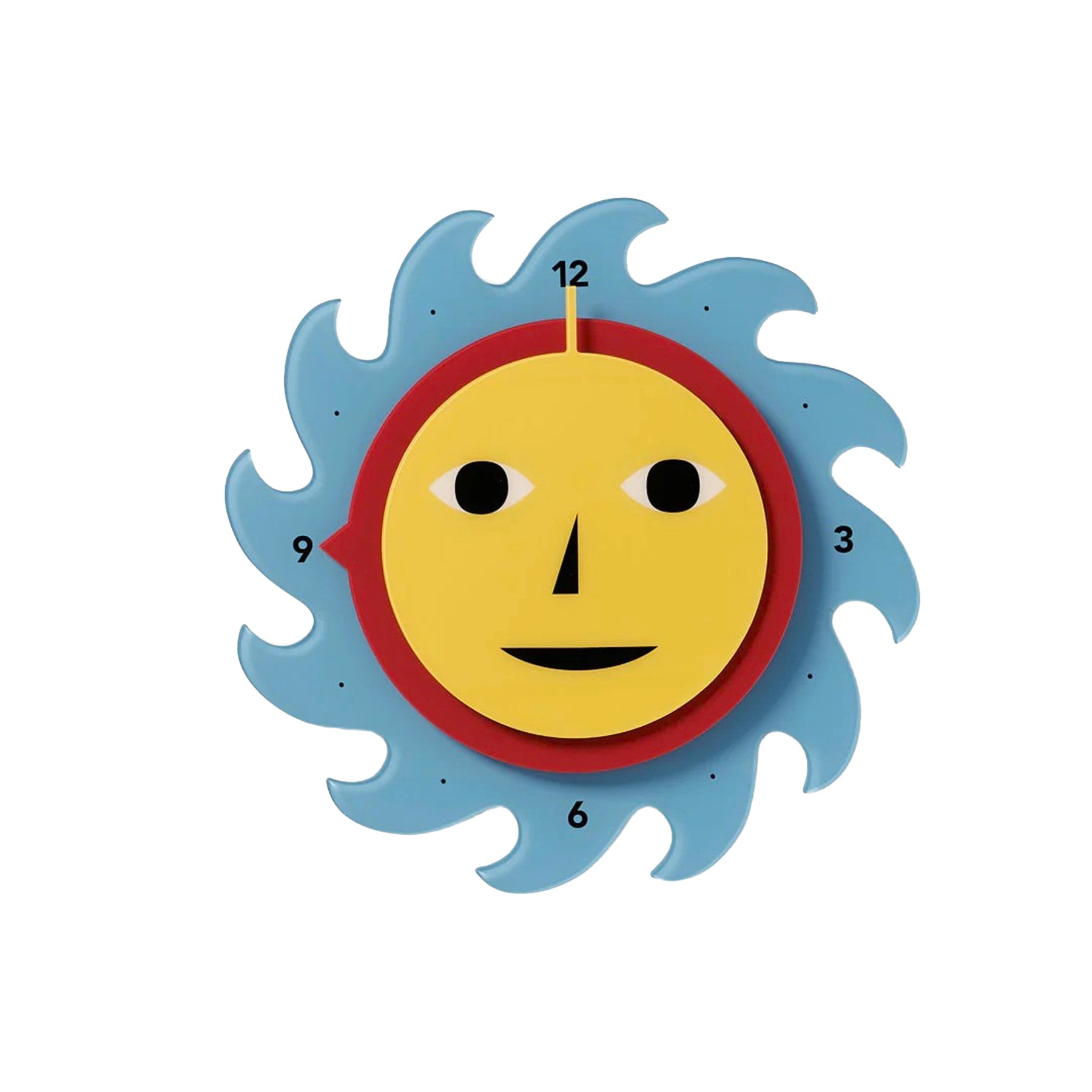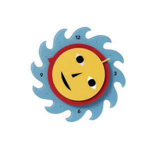 The Everybody Clock turns its happy yellow face and ruby-red dial with each minute, helping you keep time with a smile.