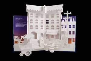Open this beautiful gift book and follow the Festival of Lights through place and time—from Herod’s temple to a shtetl in Russia, from a refugee ship bound for the New World to an Israeli kibbutz. Inspired by Michael J. Rosen’s reverent poem, Robert Sabuda’s striking pop-ups depict each night’s menorah in a different scene, utilizing imagery such as desert tents, olive trees, and a final panorama of skyscrapers. Sure to be a treasured family heirloom, this stunning collaboration showcases the spirit and resilience of a people in search of home.