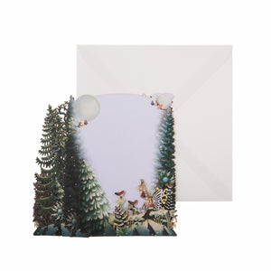Bring some festive warmth to someone in your life with this beautiful woodland scene of a tree adorned by Christmas fairies. With no assembly required, this card ships flat and easily pops up to display.
