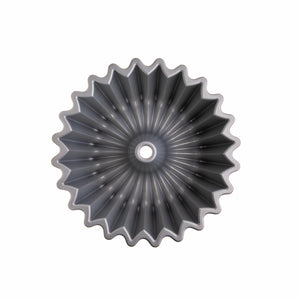 Crafted from durable cast aluminum, the pan ensures even heat distribution for consistently golden, perfectly baked results. Its premium nonstick interior allows for effortless cake release and quick cleanup, preserving every intricate detail of the geometric pattern. Ideal for glazes, drizzles, or a light dusting of powdered sugar, the design highlights the elegance and sophistication of each cake.