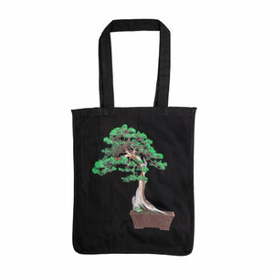 Black Tote bag featuring a stunning photograph a California juniper (Juniperus californica), bunjin (literati or abstract style) bonsai, which is 500 years old.