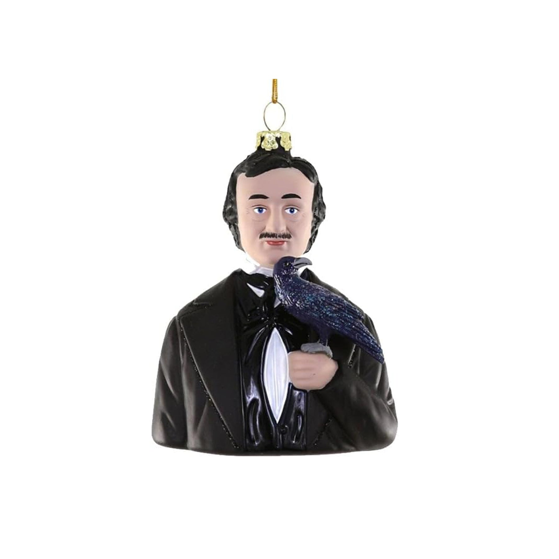 Dive into the mysterious realm of classic literature with this delightfully detailed Edgar Allan Poe ornament.