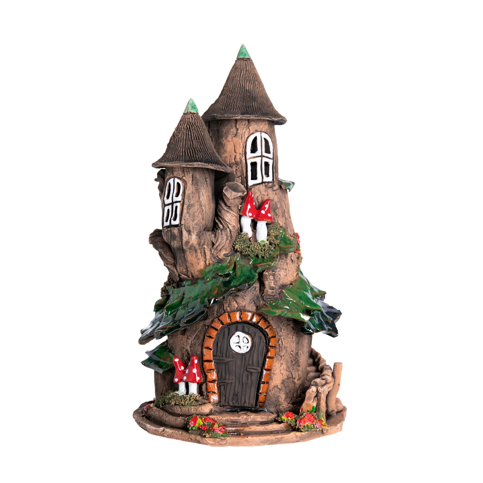 This charming double-turret fairy castle is crafted entirely by hand in an artisan ceramics studio in Lithuania. Each intricately detailed model is unique, and is carefully sculpted, painted and glazed, one piece at a time.