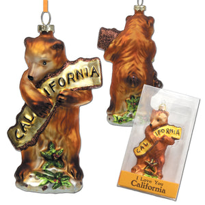This design for this beautifully detailed, molded glass ornament was inspired by the 1913 sheet music cover for California's state song, "I Love You California". Makes a perfect, year-round decor piece for any fan of the Golden State.