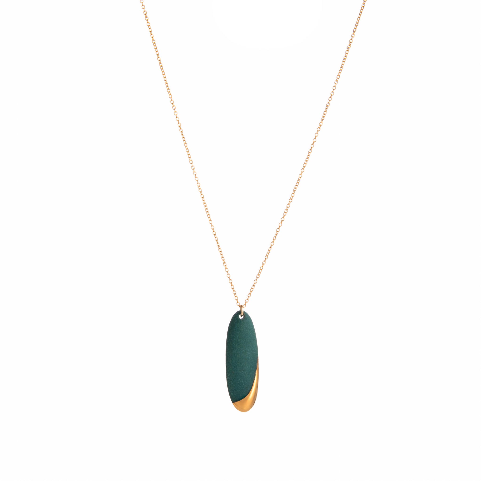 • Materials: Porcelain, 22k gold dip, 14k gold-filled chain