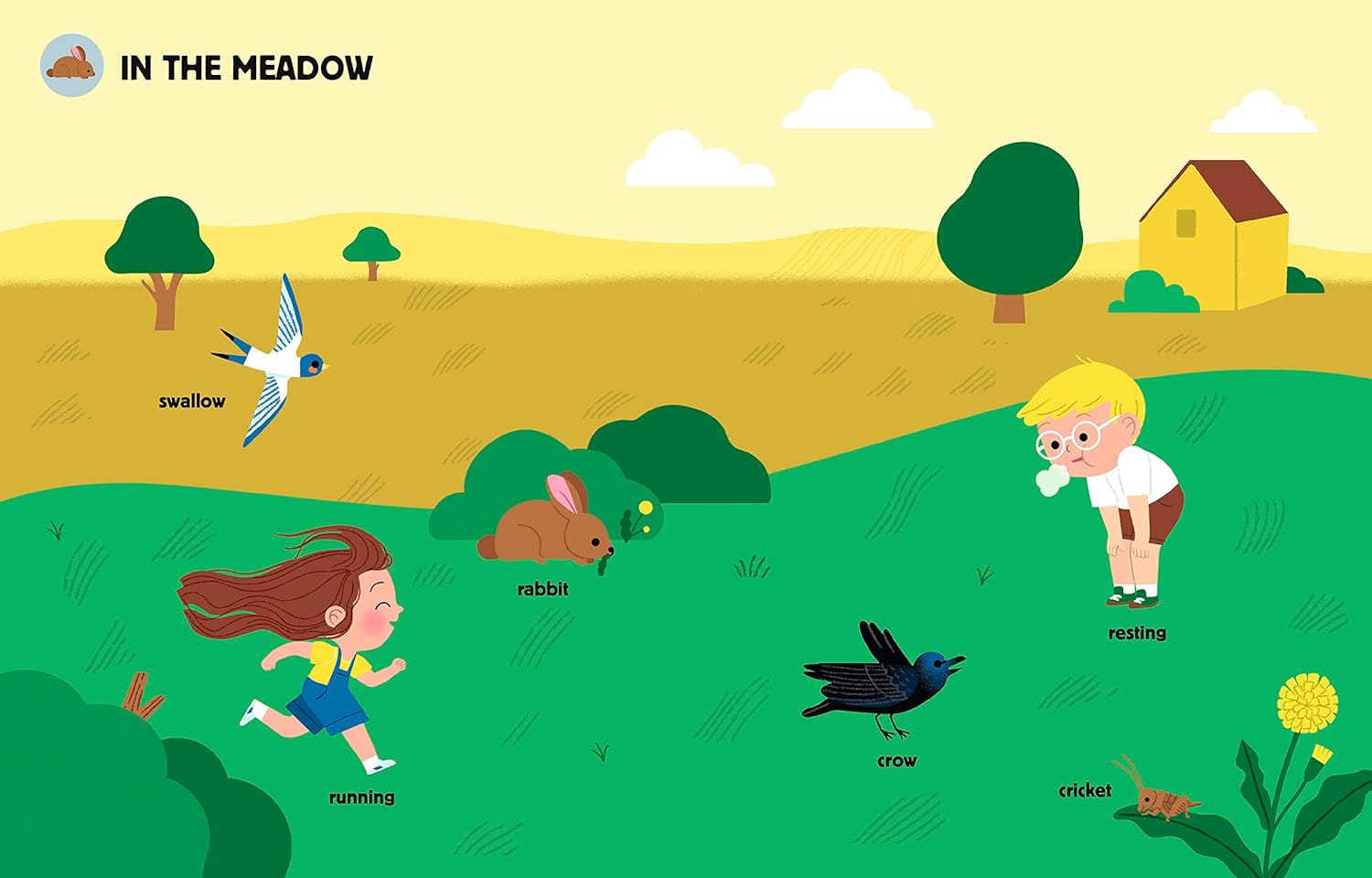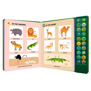 Buzz! Crunch! Woof! Moo! What’s that sound? Press the buttons to find out!