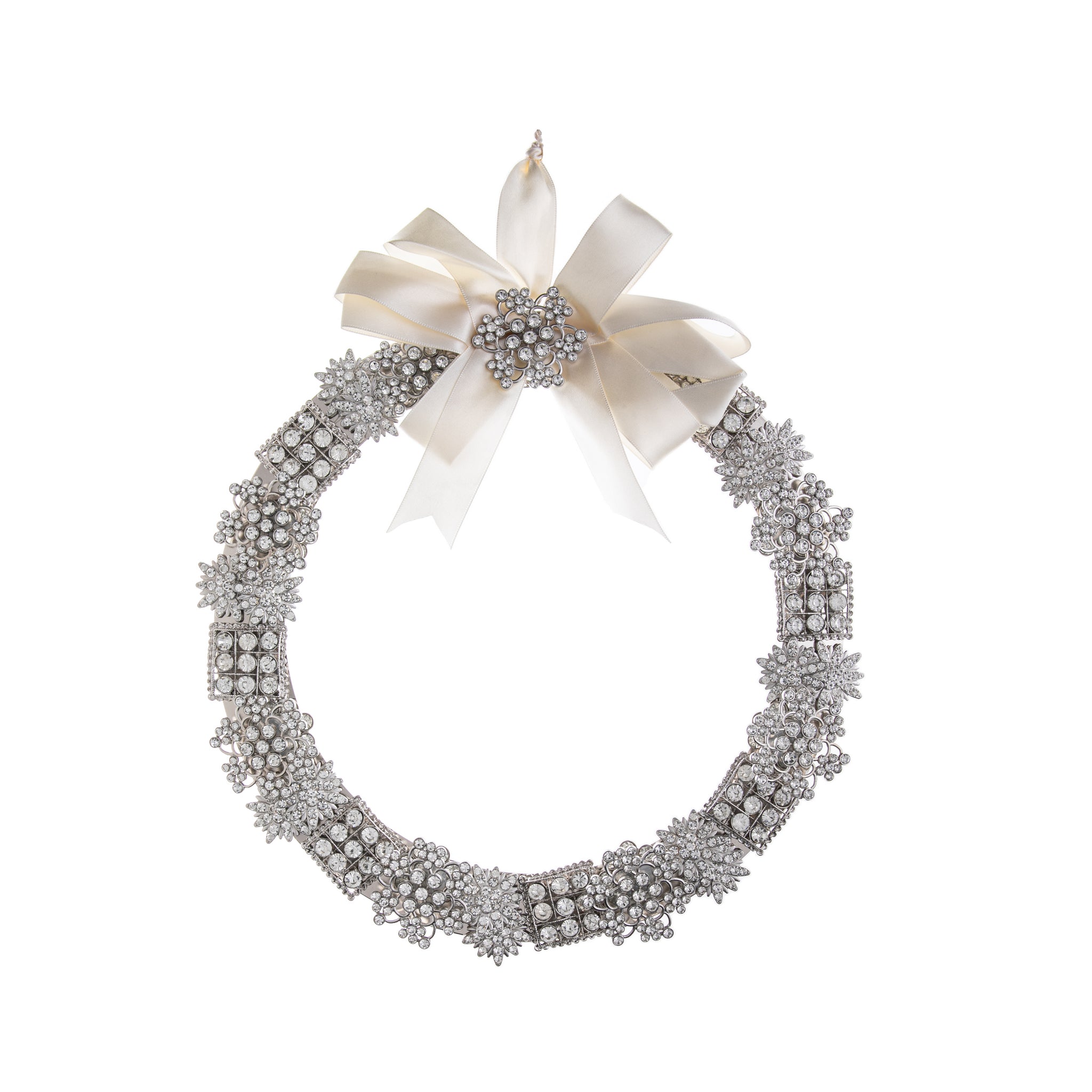 This wreath bejeweled in silver and vintage-style crystal brooches is gorgeous to elevate your home or holiday decor.