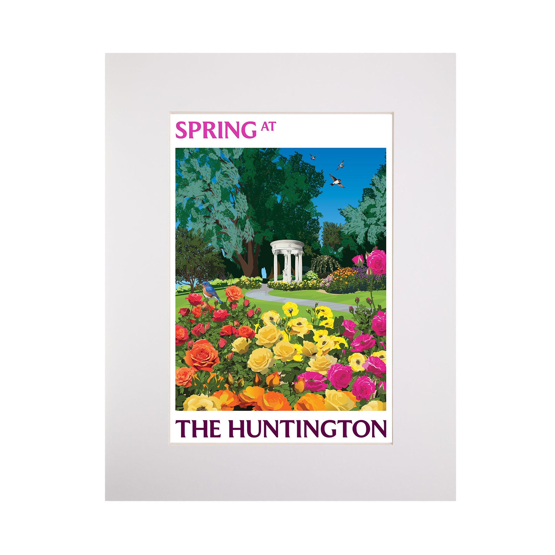 Created by artist Don Dufur, this iconic image of The Huntington's Rose Garden is a high-resolution, high-quality reproduction, individually printed on special large-format printers, with vibrant color.
