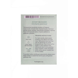 Growing instructions: For best results, plant seeds outdoors from March through June. Milkweed loves heat and will not germinate at cooler temperatures. Plant three to five seeds in each shallow hole; milkweed doesn’t mind growing close together. Keep soil moist while seeds sprout, usually two to four weeks. Young plants need regular watering until they are established; spring showers can supplement water requirements.